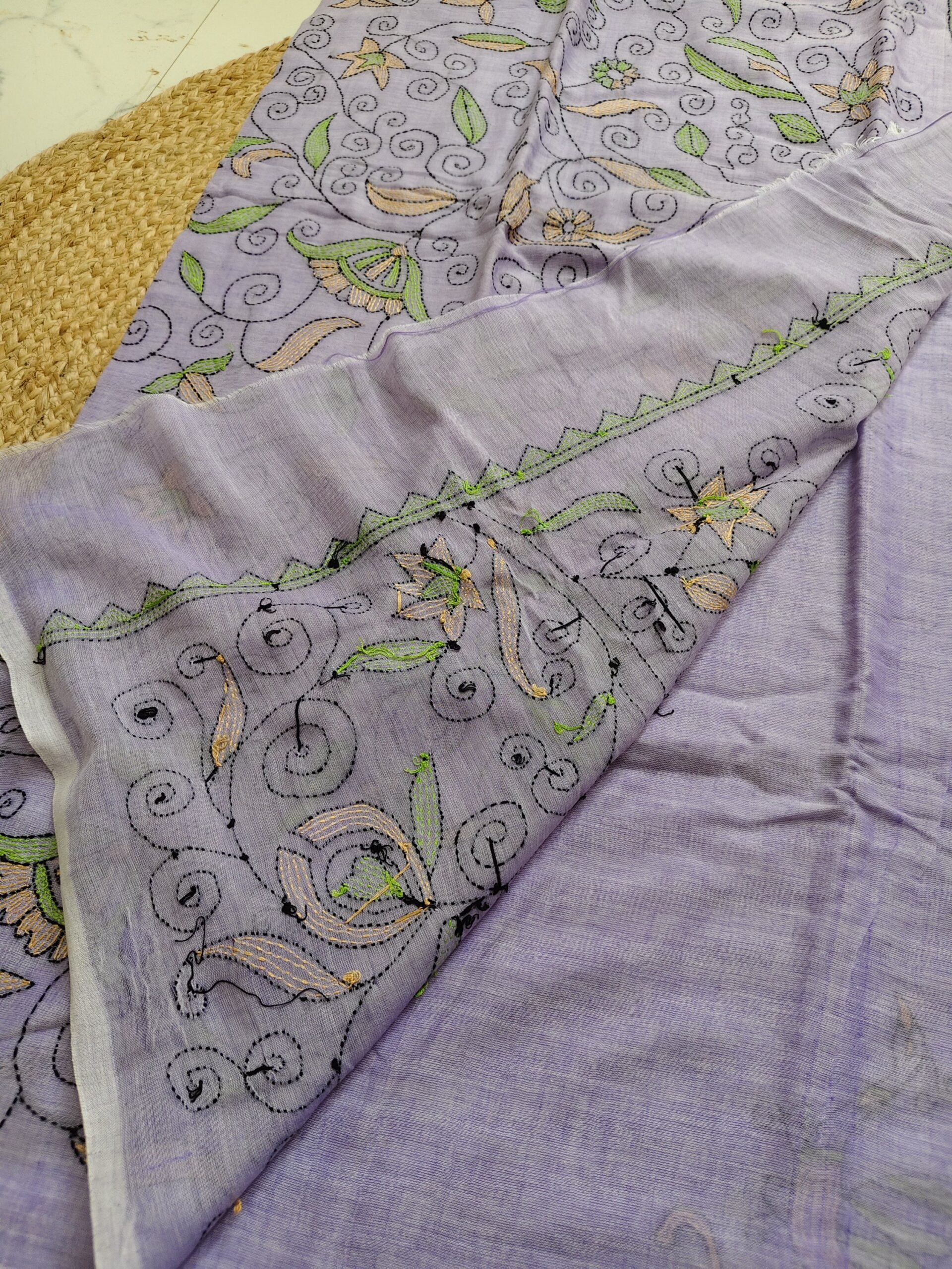 KANTHA WORK MUL COTTON SAREE