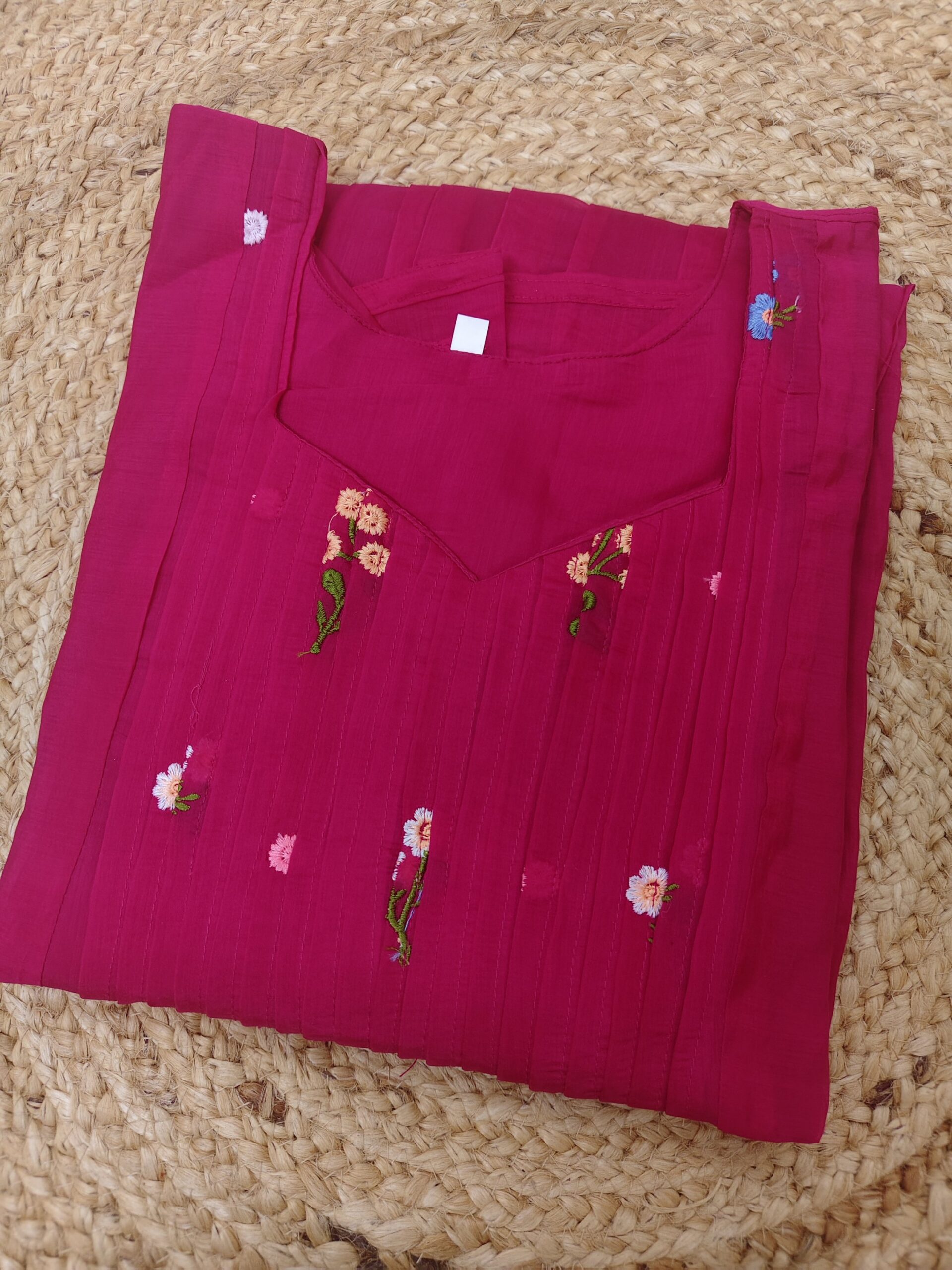 Mul chenderi dress with embroidery work